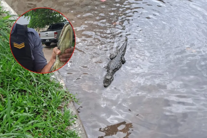 Un yacaré apareció en macrocentro de Resistencia, nadaba por las calles inundadas