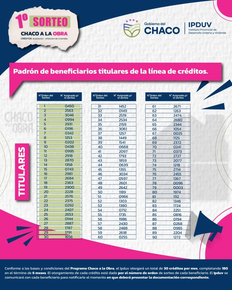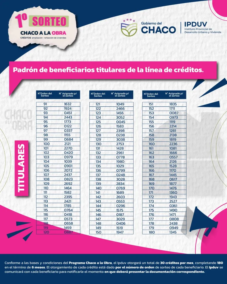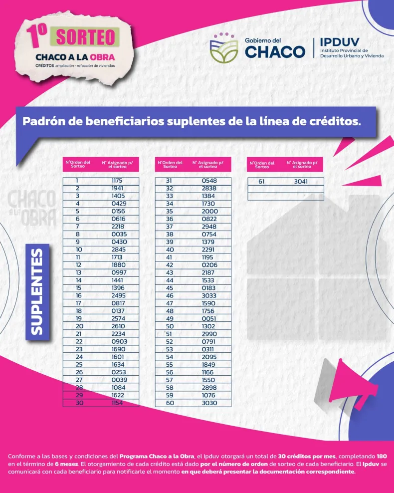 El Instituto de Viviendas publicó los 180 titulares que accederán al préstamo millonario y los 60 suplentes.