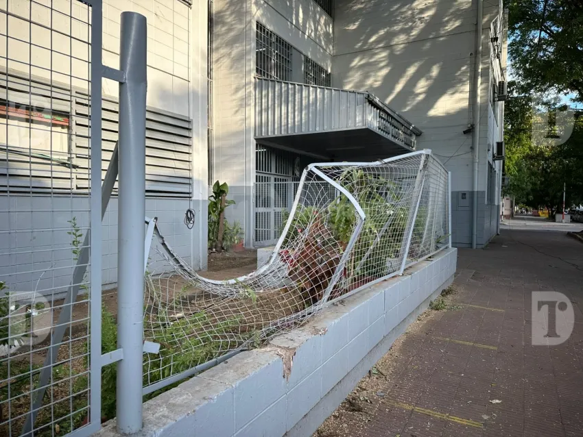 Un árbol de gran porte cayó sobre la reja perimetral de la institución, ocasionando serios destrozos en su estructura metálica. Las imágenes actuales muestran los escombros del árbol en la vereda y partes de la reja doblada y desplazada, lo que pone en evidencia el impacto del incidente.