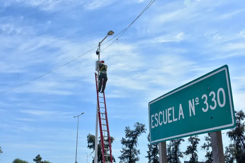 En tal sentido, cabe mencionar que a través del tendido de fibra óptica se puede llegar a más barrios con la instalación de cámaras, en este caso es el acceso al barrio Matadero frente a la escuela N° 330 Filomeno Bracone.