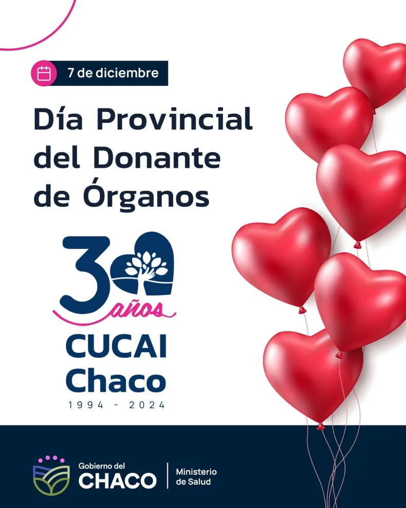 En el marco del Día Provincial del Donante de Órganos, el CUCAI Chaco conmemora su 30° aniversario destacando tres décadas de compromiso con la promoción de la donación y el trasplante de órganos.