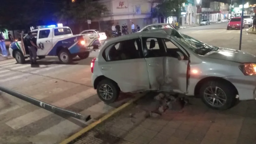 Por exceso de velocidad, perdió el control del auto y chocó contra un semáforo