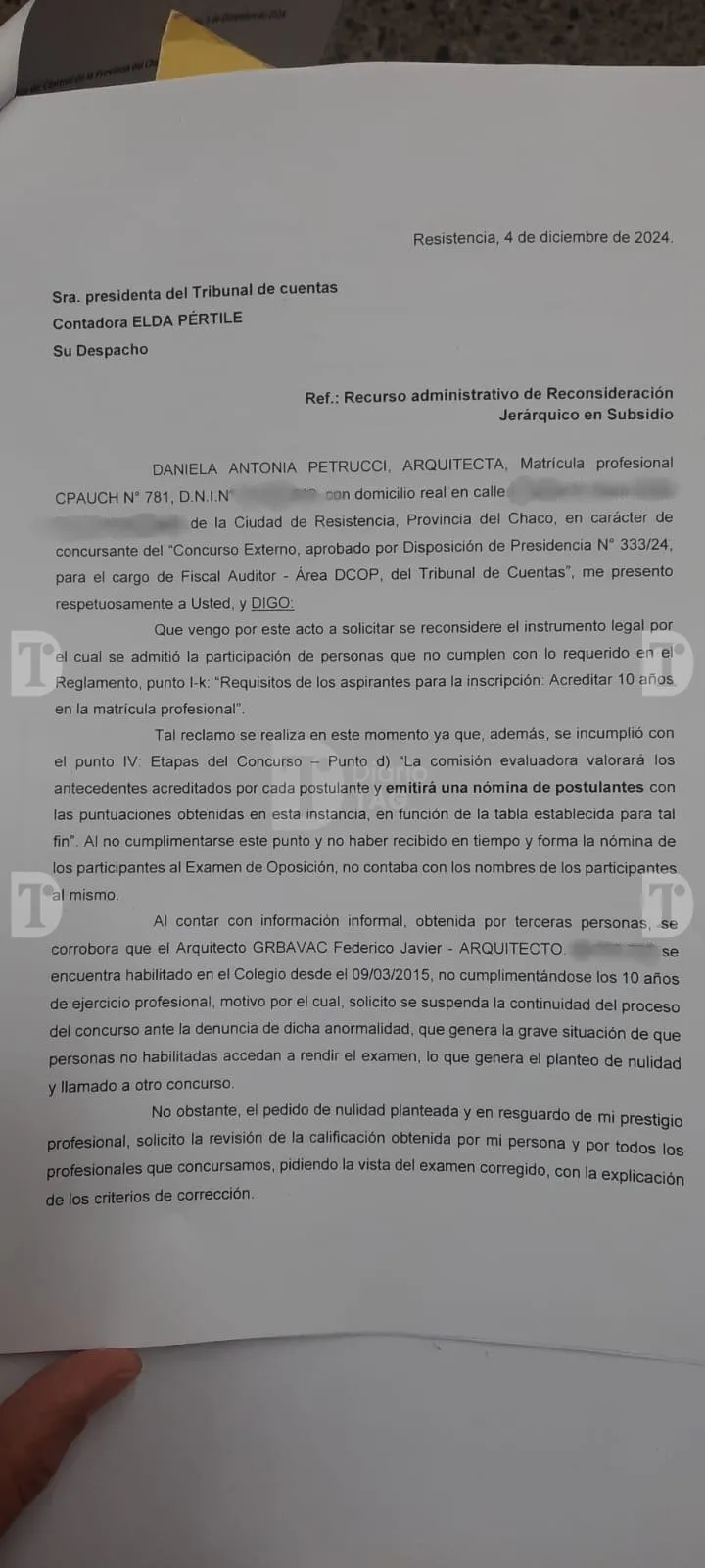 El reciente concurso público para cubrir la vacante de Fiscal Auditor del Tribunal de Cuentas de la Provincia de Chaco generó una serie de denuncias por presuntas irregularidades en el proceso. El arquitecto Federico Javier Gravac, quien resultó ganador del concurso, enfrenta cuestionamientos de varios postulantes que piden la nulidad del proceso y su repetición.