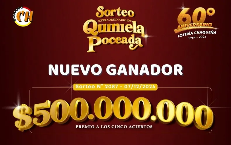Este último sábado se sorteó la edición aniversario de la Poceada Chaqueña, donde una persona se llevó el pozo extraordinario de 500 millones de pesos, el afortunado se presentó en la agencia de Lotería Chaqueña para retirar su premio.