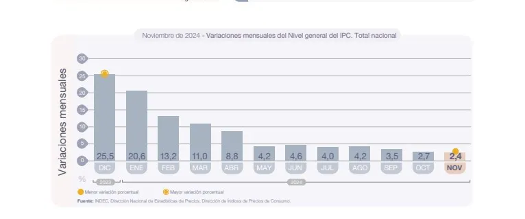La inflación de noviembre fue del 2,4% y en el año acumuló el 112%