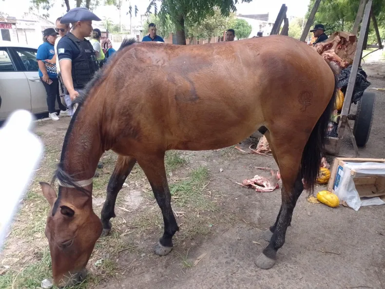 El hecho ocurrió en la intersección de las avenidas Hernandarias y Marconi, donde los agentes detectaron un carro cargado que era tirado por un caballo, tras el aviso de vecinos de la zona.