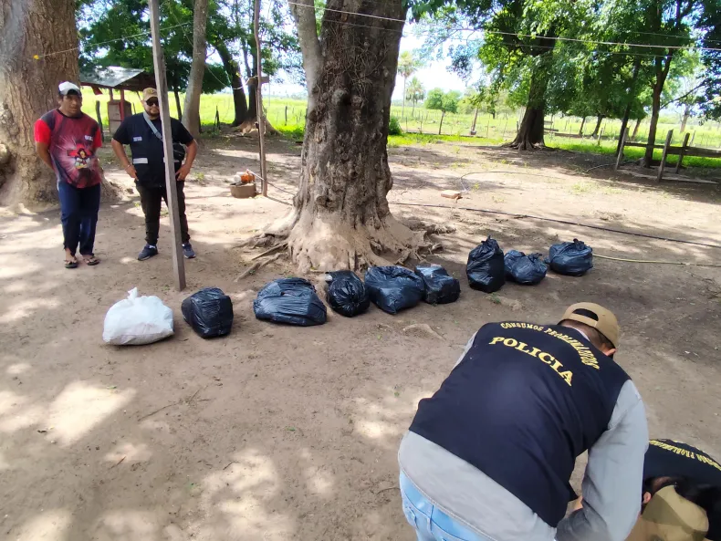 El procedimiento se realizó este viernes en el paraje "Cuatro Diablos", en La Leonesa, comenzó con tareas de vigilancia discreta durante más de 24 horas. La investigación incluyó técnicas especiales previstas en la Ley de Delitos Complejos, permitiendo obtener indicios suficientes para ejecutar un allanamiento. En el lugar se incautaron 92,5 kilos de cogollos de marihuana distribuidos en bultos y paquetes de polietileno transparente termosellado.