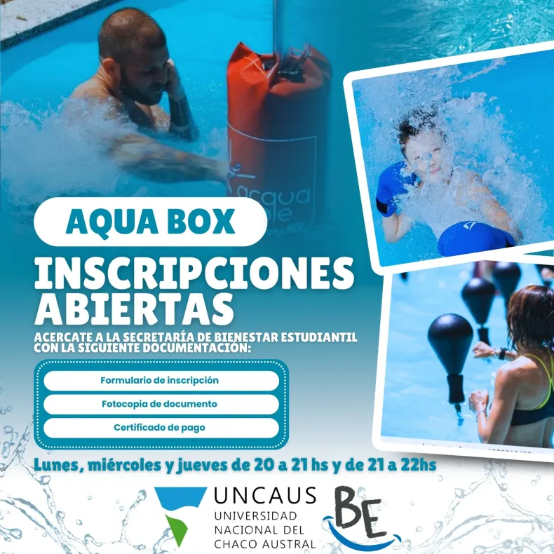 La Universidad Nacional del Chaco Austral (UNCAUS) abrió inscripciones para clases de Aqua Box, destinadas a personas a partir de los 6 años de edad. El 16 de diciembre comienzan las clases en el natatorio de la Universidad y se realizarán en los días lunes, miércoles y jueves, en dos turnos, el primero de 20 horas a 21 horas y el segundo turno de 21 hora a 22 horas.
