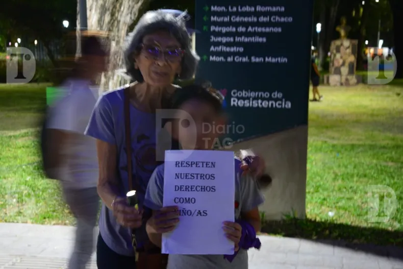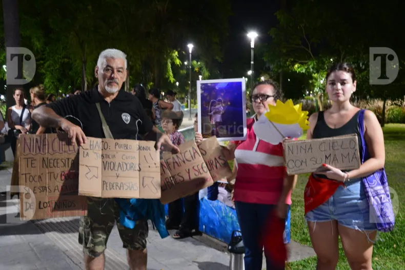Los presentes, al grito de "Justicia" también llevaron carteles y velas, según fue pedido en la convocatoria que circuló en redes sociales. "No seas ajeno, no mires al costado. Mañana puede ser tu familia la víctima. Pedimos que escuchen a la niña y no se vulneren sus derechos", indicaron.