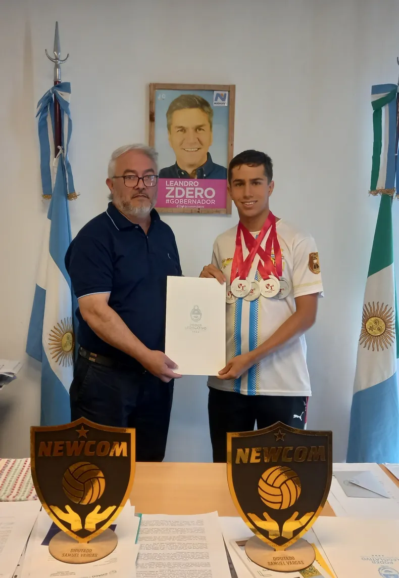 El diputado provincial Samuel Vargas entregó este miércoles una Resolución de Beneplácito al joven nadador chaqueño David Klaner García,en reconocimiento a su destacada participación en el Torneo Master 2024, donde obtuvo cinco medallas. El acto se llevó a cabo en la sede de la Cámara de Diputados y contó con la presencia de los padres del deportista.