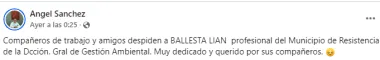 El joven de 30 años se desempeñaba en la U.E.G.P. N° 161 "Instituto Barranqueras", quienes decretaron un día de duelo tras su fallecimiento. Además, Lían cumplía funciones en la Dirección General de Gestión Ambiental de la Municipalidad de Resistencia. Él se presentaba a sí mismo como gestor ambienta, emprendedor y docente, también padre de un niño de 6 años.