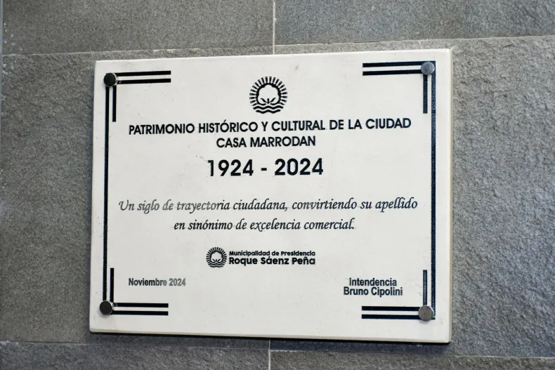 Este año, la empresa de la familia Marrodán celebró un siglo de existencia y fue reconocida por el municipio de Presidencia Roque Sáenz Peña. En la tarde del miércoles, el intendente Bruno Cipolini, junto a la familia Marrodán, realizó el descubrimiento de una placa que declara Patrimonio Histórico y Cultural al tradicional local de la empresa, ubicado en la calle 12, entre 3 y 5, en el centro de la ciudad.