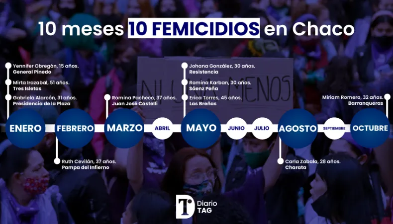 En 2024, se registraron diez femicidios en la provincia de Chaco,seis de esas mujeres fueron asesinadas por sus parejas, dos por sus exparejas, una por un familiar cercano y una de ellas por un desconocido. Tan solo una de las víctimas había denunciado a su agresor por violencia de género dos años antes de su asesinato.