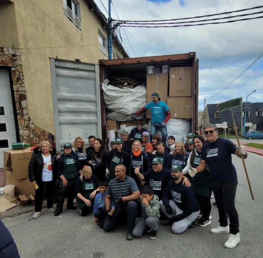 Tres equipos completos fueron llenados de materiales reciclable que fueron llevados, por un lado, al puerto de Ushuaia y, posteriormente enviados por barco a Buenos Aires donde otra vez son trasladados a la Fundación en camiones.