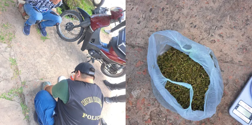 Durante el control, se le solicitó al conductor que exhibiera el baúl de la motocicleta, donde se encontró una bolsa de nylon verde que contenía una sustancia amarronada. Al realizar una prueba de campo en el lugar, se confirmó que se trataba de marihuana con un peso total de 250 gramos.