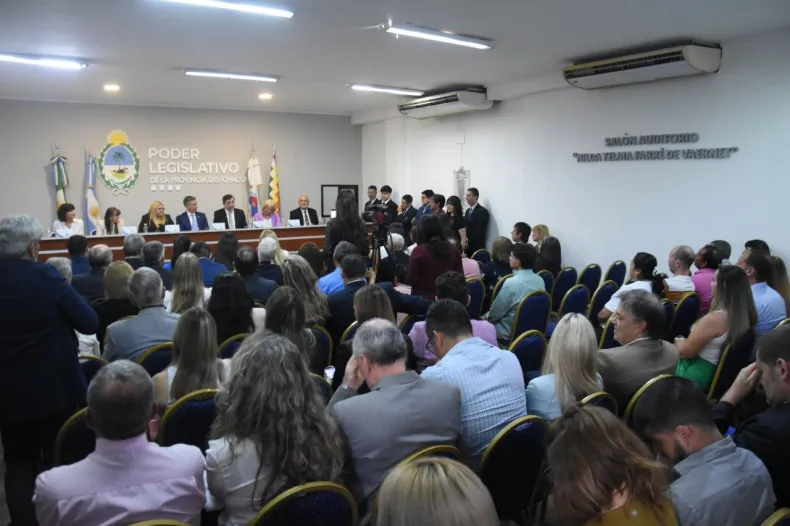 La Titular de la Legislatura Carmen Delgado junto a los diputados Silvina Canteros, Maida With, Pía Cavana y Dorys Arkwright participó del acto de toma de juramento del Juan José Fuentes Castillo como Presidente del Órgano Constitucional que se encarga del control externo de la provincia, tras la culminación del mandato de Elda Pértile.