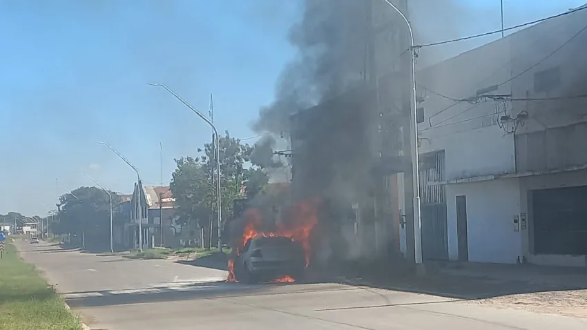 En la mañana de este lunes un automóvil se prendió fuego en avenida 25 de Mayo y Ruta N°11 en la ciudad de Resistencia se trata de un Renault Megane, el incendio provocó solo daños materiales y no se registraron heridos.