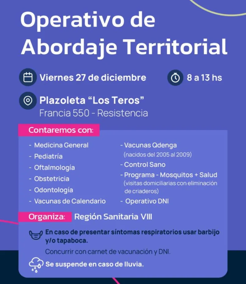 Resistencia: este viernes habrá un operativo integral de salud en la Plazoleta "Los Teros"