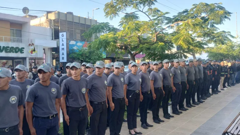 Encabezados por el ministro de Seguridad Hugo Matkovich, el intendente Bruno Cipolini y el Jefe y subjefe de la Policía se llevó a cabo la presentación de los nuevos agentes y el lanzamiento del operativo Fiestas Seguras.