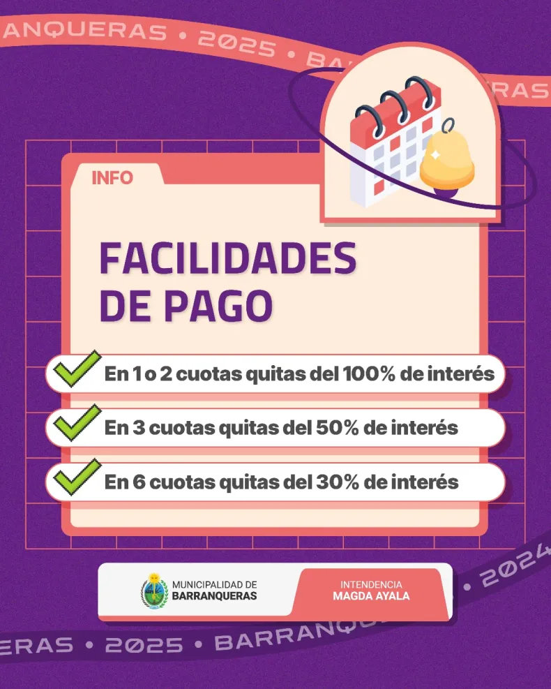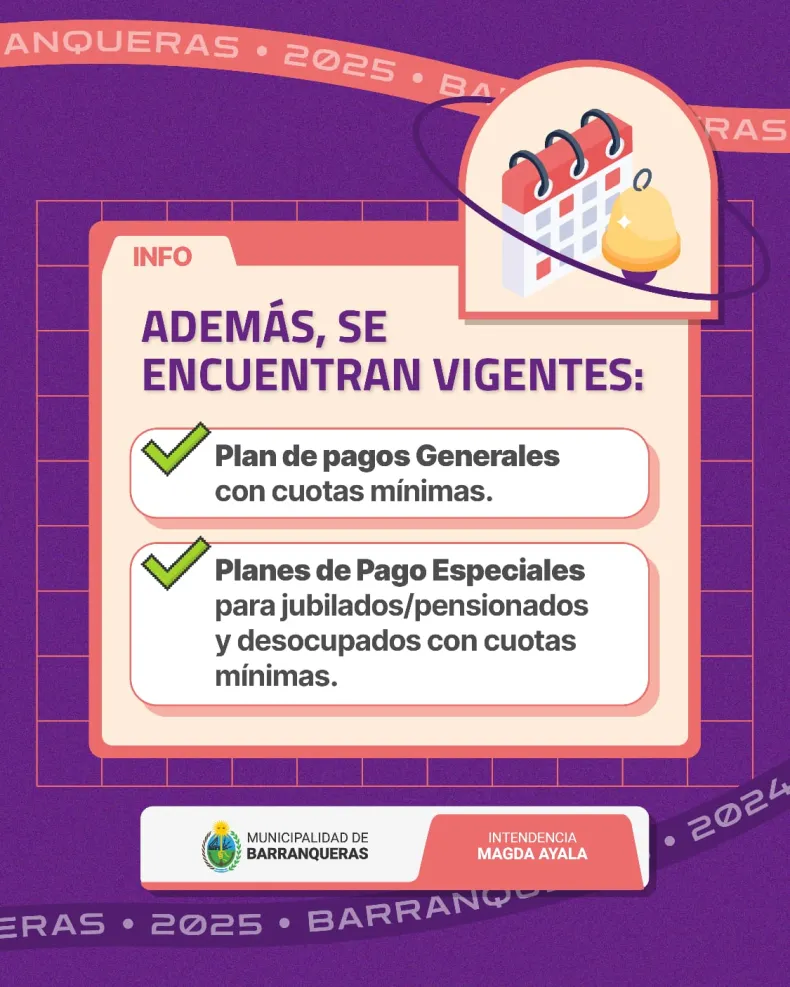 Estos beneficios buscan facilitar el cumplimiento de las obligaciones tributarias y apoyar a las familias de Barranqueras con alternativas accesibles y convenientes.