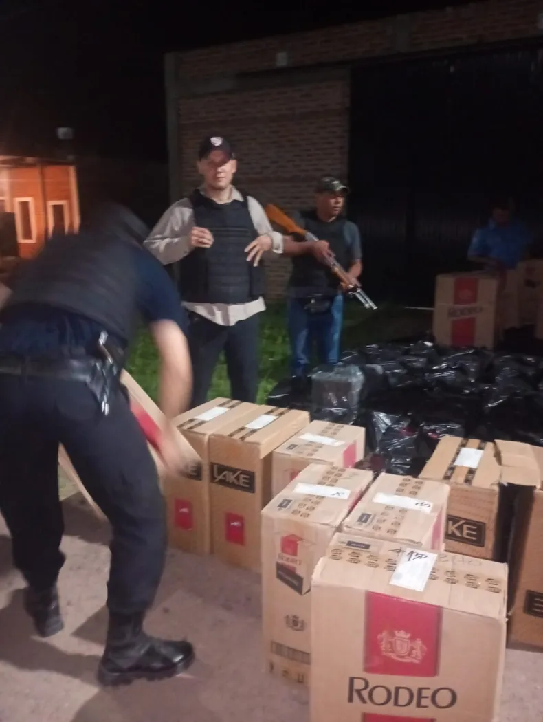 Un sospechoso escapó hacia un monte, dejando más de $ 34 millones en cigarrillos de contrabando en un galpón. La Policía realizó un allanamiento y secuestró la mercadería ilícita.