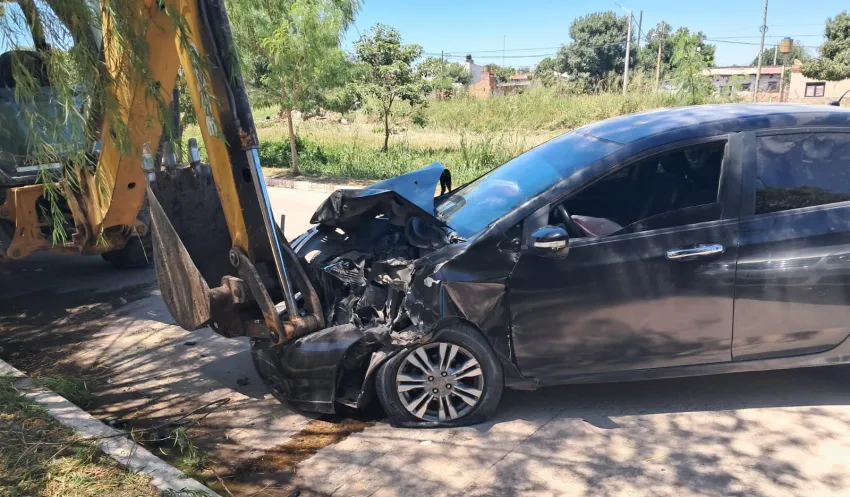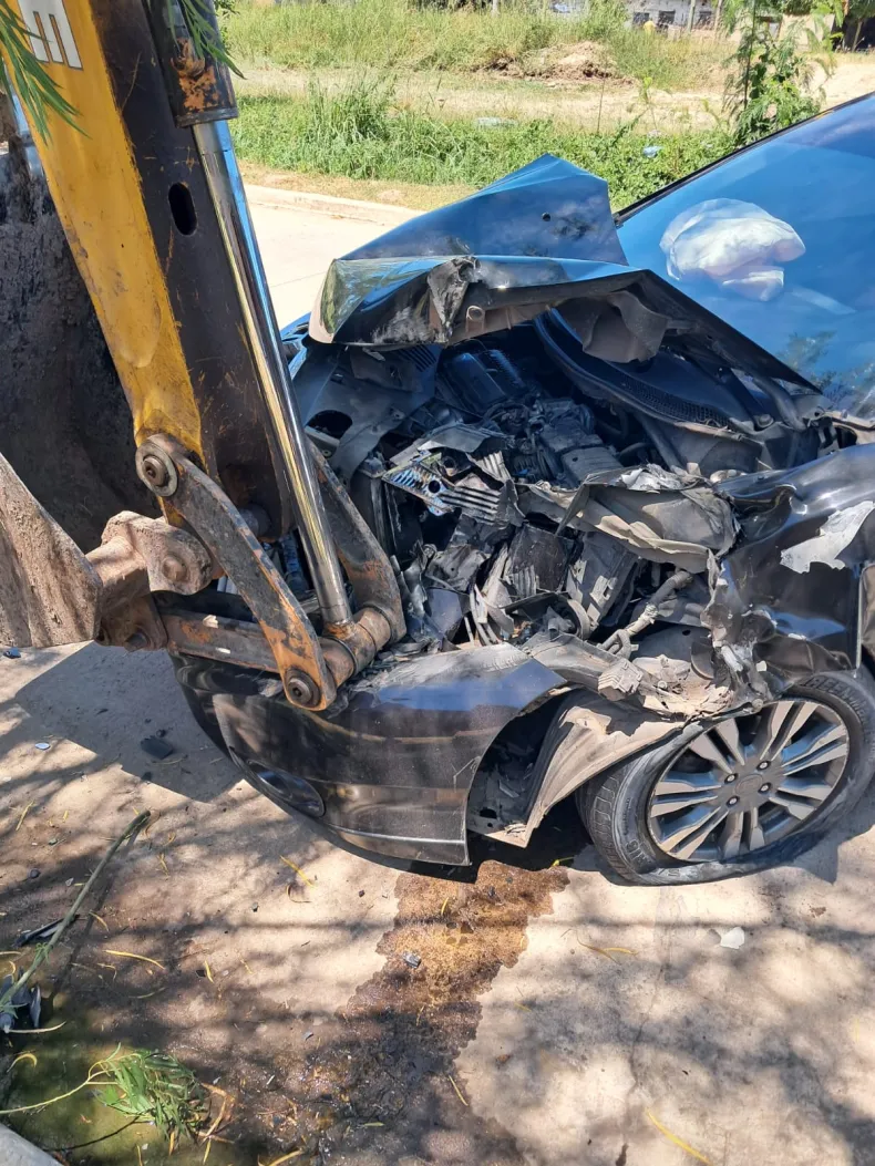 Irresponsabilidad al volante: conducía ebrio, perdió el control del auto y chocó maquinaria estacionada