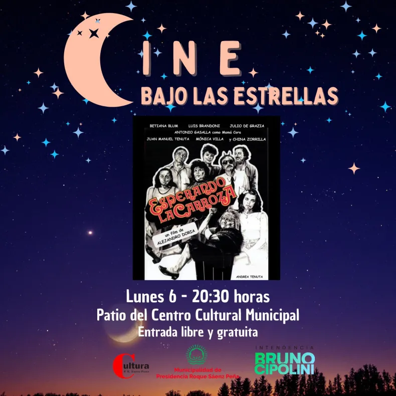 Además, el ciclo de "Cine bajo las Estrellas" este año tendrá dos funciones, las proyecciones serán los días lunes y martes a las 20:30 en el patio del Centro Cultural Municipal con entrada libre y gratuita. Esta semana se proyectará "Esperando la Carroza" el lunes y "Pasante de Modas" el martes.