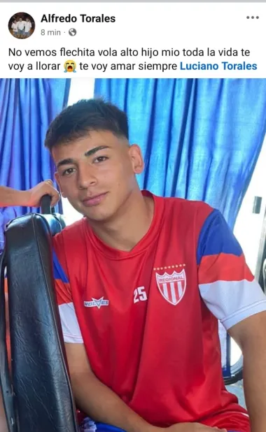 "Nos vemos flechita vola alto hijo mío toda la vida te voy a llorar te voy amar siempre", escribió en un desgarrador posteo en Facebook Alfredo Torales el padre del joven de 20 años despidiendo a su hijo, tras confirmarse la noticia.