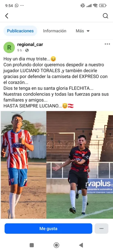 El joven era futbolista del Club Atlético Regional de Resistencia quienes también despidieron a su jugador: "Hoy un día muy triste. Con profundo dolor queremos despedir a nuestro jugador LUCIANO TORALES, y también decirle gracias por defender la camiseta del EXPRESO con el corazón...Dios te tenga en su santa gloria FLECHITA...Nuestras condolencias y todas las fuerzas para sus familiares y amigos...HASTA SIEMPRE LUCIANO...".