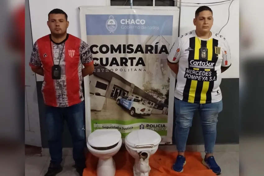 En una persecución por las calles de la zona, dos hombres abandonaron inodoros robados tras notar la presencia policial. Los objetos fueron secuestrados y llevados a la comisaría.