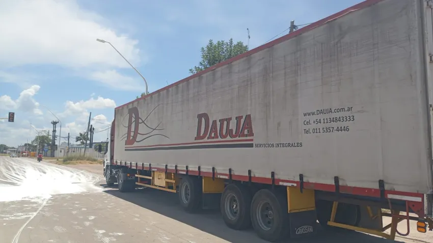 Un camión transportador volcó tachos y derramó pintura sobre el asfalto en la Ruta N°11