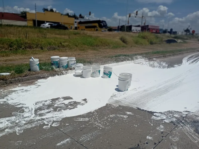 En el mediodía de este lunes, un camión transportador derramó pintura en la cinta asfáltica en la colectora de la Ruta Nacional N°11 al kilómetro 1006 aproximadamente en la ciudad de Resistencia.