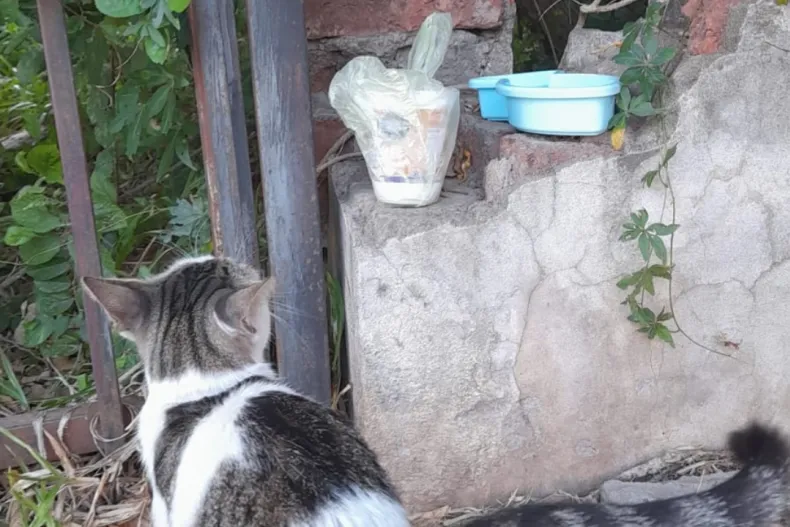 Uno de los vecinos que alimenta y visita frecuentemente a la gata contó que "siempre tuvo bandejas de plástico, ahí le poníamos agua y alimento balanceado", de alguna manera se convirtió en la mascota del vecindario, sin embargo, el ciudadano aclaró: "No nos turnamos, lo que yo hago es llevarle el alimento y dos veces me cruce con vecinos que me comentaron que también le llevan la comida".