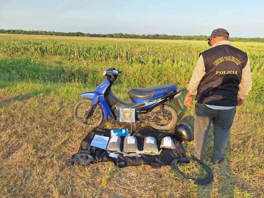 Tras realizar las pruebas de campo pertinentes, se confirmó que la sustancia era marihuana, también conocida como Cannabis Sativa. Además, se secuestraron otros elementos como una motocicleta marca Gilera Smash de 110cc, un billete de $ 2.000 en moneda paraguaya, un billete de $ 2 brasileños, y $ 4.700 en efectivo.