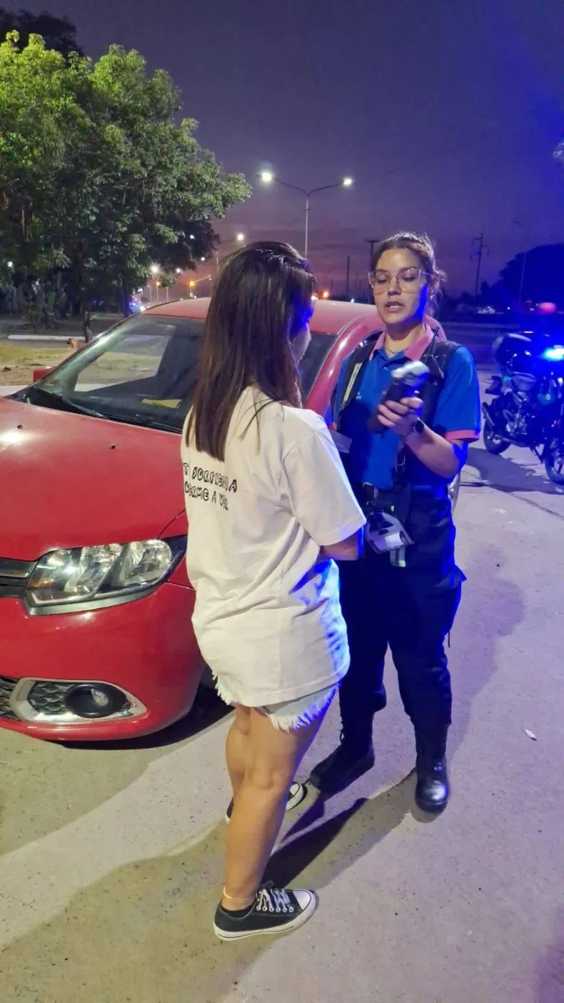 Una joven de 24 años, fue detenida este sábado en la Av. Malvinas Argentinas y Calle Santa María de Oro, luego de evadir un control de tránsito mientras conducía un Sandero rojo.