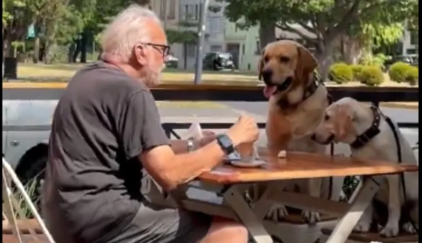 Nuevamente los animales se vuelven virales en las redes sociales y esta vez, por un tierno video donde se ve a dos perros acompañando a su amo mientras este toma un café.