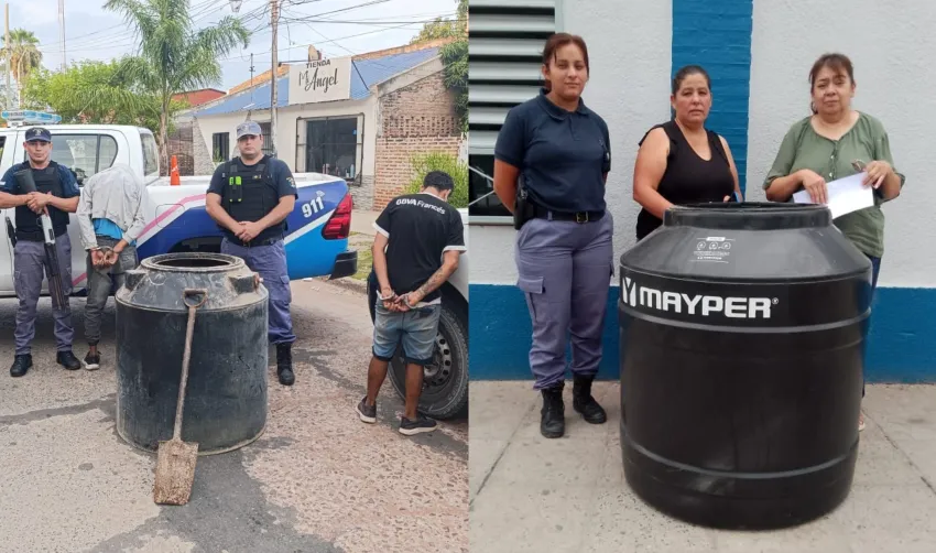 En Sáenz Peña, este martes por la mañana, un llamado al 911 alertó sobre dos personas que caminaban por la calle transportando un tanque de agua de 500 litros. Los agentes de la Comisaría Primera y de Patrulla Preventiva interceptaron a los sospechosos, quienes intentaron escapar al ver a la policía.