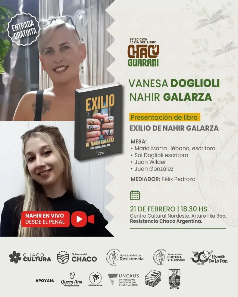 La joven estará presente de manera virtual en la presentación del libro El Exilio de Nahir, de Vanesa Doglioli, que aborda su caso. La cita será el 21 de febrero a las 18:30, y Galarza participará desde el Penal N° 6 de Paraná, Entre Ríos.