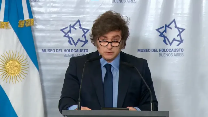 El presidente argentino, Javier Milei, brindó este lunes un discurso por el aniversario de los 80 años de la liberación del campo de concentración nazi de Auschwitz a manos del Ejército Rojo soviético, el 27 de enero de 1945.