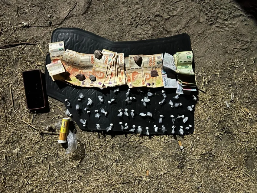 Al realizar una inspección en el baúl del rodado, hallaron un envoltorio con varias "bochitas" en su interior y unos 59 mil pesos. Por ello procedieron a solicitar colaboración al personal de la Dirección General de Consumos Problemáticos, quienes realizaron las tareas pertinentes. Conforme a la prueba de campo, dio positivo a cocaína, siendo unas 48 "bochitas" con un peso total de 24 gramos.