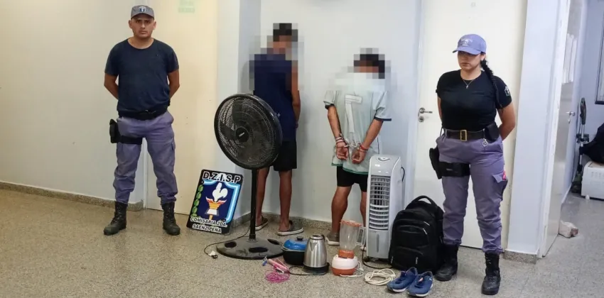 Por ello, procedieron a realizar recorridas por las inmediaciones y lograron la aprehensión de ambos de 22 y 32 años, quienes trasladaban a pie todo lo sustraído. Conforme lo dispuesto por la Fiscalía en turno, fueron notificados en causa "Supuesto Hurto" y alojados en la unidad policial. En tanto los elementos quedaron resguardados hasta que el propietario proceda a realizar el escrito.