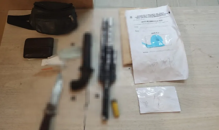 En su poder hallaron una riñonera, la cual a la hora de su apertura, poseía un envoltorio de polietileno con varias "bochitas" en su interior, unos 9.500 pesos en efectivo, una "tumbera" con un cartucho calibre 16 en su caño y un cuchillo de unos 40 centímetros.