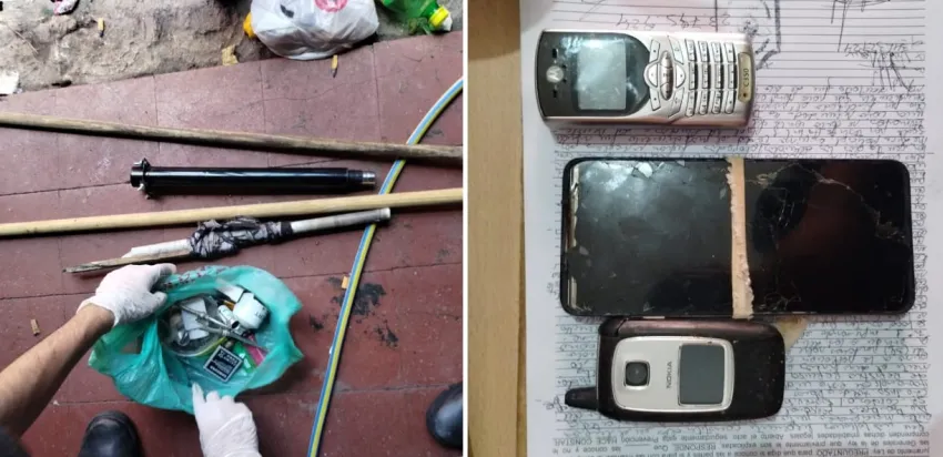 Durante el procedimiento, se procedió al secuestro de tres teléfonos celulares de distintos sin funcionamiento, un hierro de aproximadamente 40 cm con punta, tres palos tipo escobillones con punta y un tubo de aluminio color negro, correspondiente a un pedazo de soporte de ventilador.