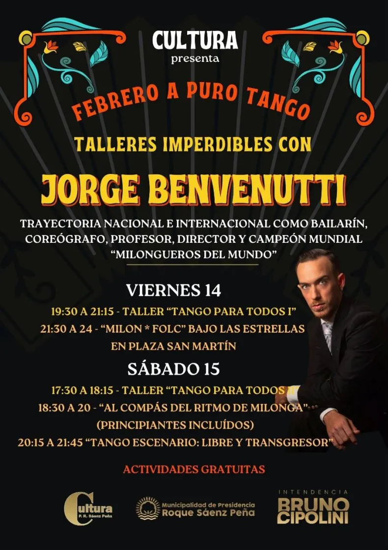 Cultura presenta "febrero a puro tango" con talleres a cargo de Jorge Benvenutti