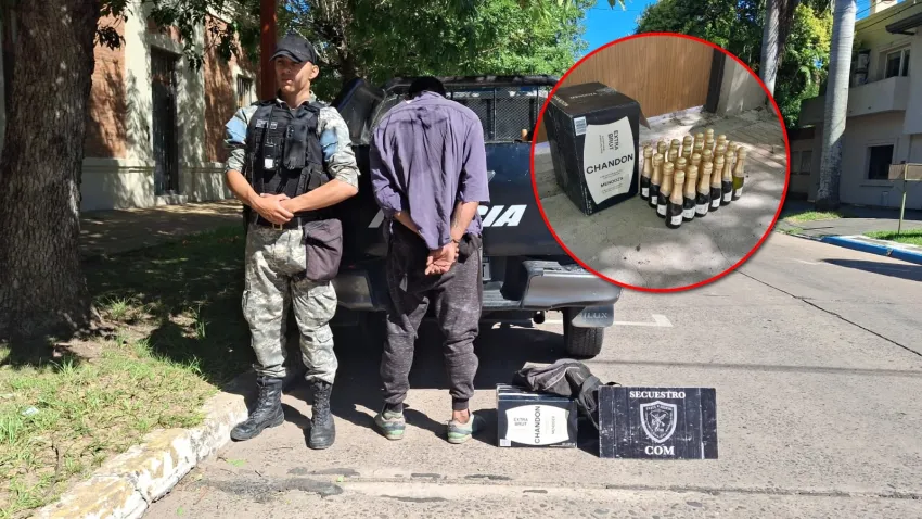 En la mañana de este domingo agentes del Cuerpo de Operaciones Motorizadas arrestaron a un hombre de 29 años que se robó 24 botellas de champagne "Chandon" de 187 m/l.