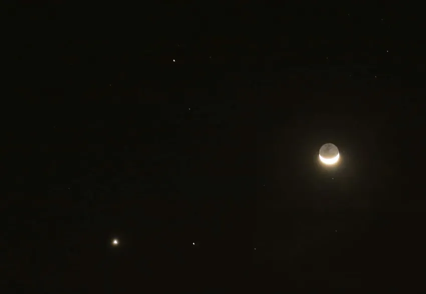 Treinta minutos después del atardecer, la Luna se situará cerca de Venus, el astro más brillante del cielo nocturno después del Sol y la Luna. El fenómeno podrá observarse durante aproximadamente una hora y media, hasta que ambos cuerpos celestes se oculten en el horizonte.
