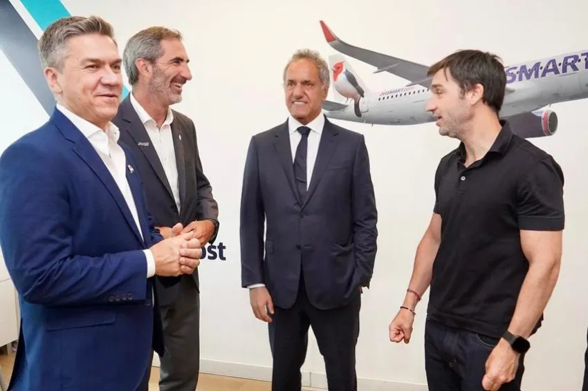 Daniel Scioli, Secretario de Turismo de la Nación; Leandro Zdero, Gobernador Chaco; Ignacio Torres, gobernador de Chubut; Gonzalo Pérez Corral, gerente general JetSMART Argentina; Federico Petazzi, gerente comercial JetSMART Argentina; Diógenes de Urquiza, es el Subsecretario de la Nación; Verónica Mazzaroli, presidenteTurismo Chaco; Martín Poccard, vicepresidente Turismo Chaco; Mario Tulio Liper Quijano, Subsecretaría de la Casa Del Chaco; Diego Lapenna, ministro de Turismo de Chubut; Gerardo Merino, Intendente de la ciudad de Trelew; Pavón Juan, Presidente de Entretur.