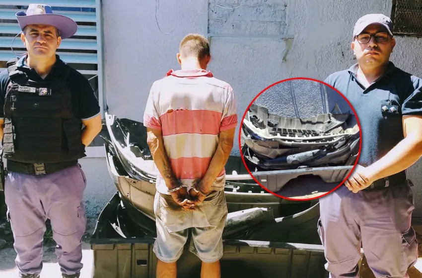 El hombre, identificado como R.D.G., de 36 años, llevaba consigo varios objetos que resultaron ser parte de un robo: ocho paragolpes de automóvil y un cobertor de caja de camioneta. Además, entre sus pertenencias se encontraban dos cuchillos tipo serrucho con cabo de madera, lo que levantó sospechas de que podría haber estado involucrado en actividades delictivas.