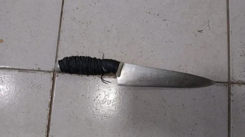 Tras su detención, el agresor fue trasladado a la dependencia policial junto con el secuestro del cuchillo, que tenía aproximadamente 20 centímetros de hoja.