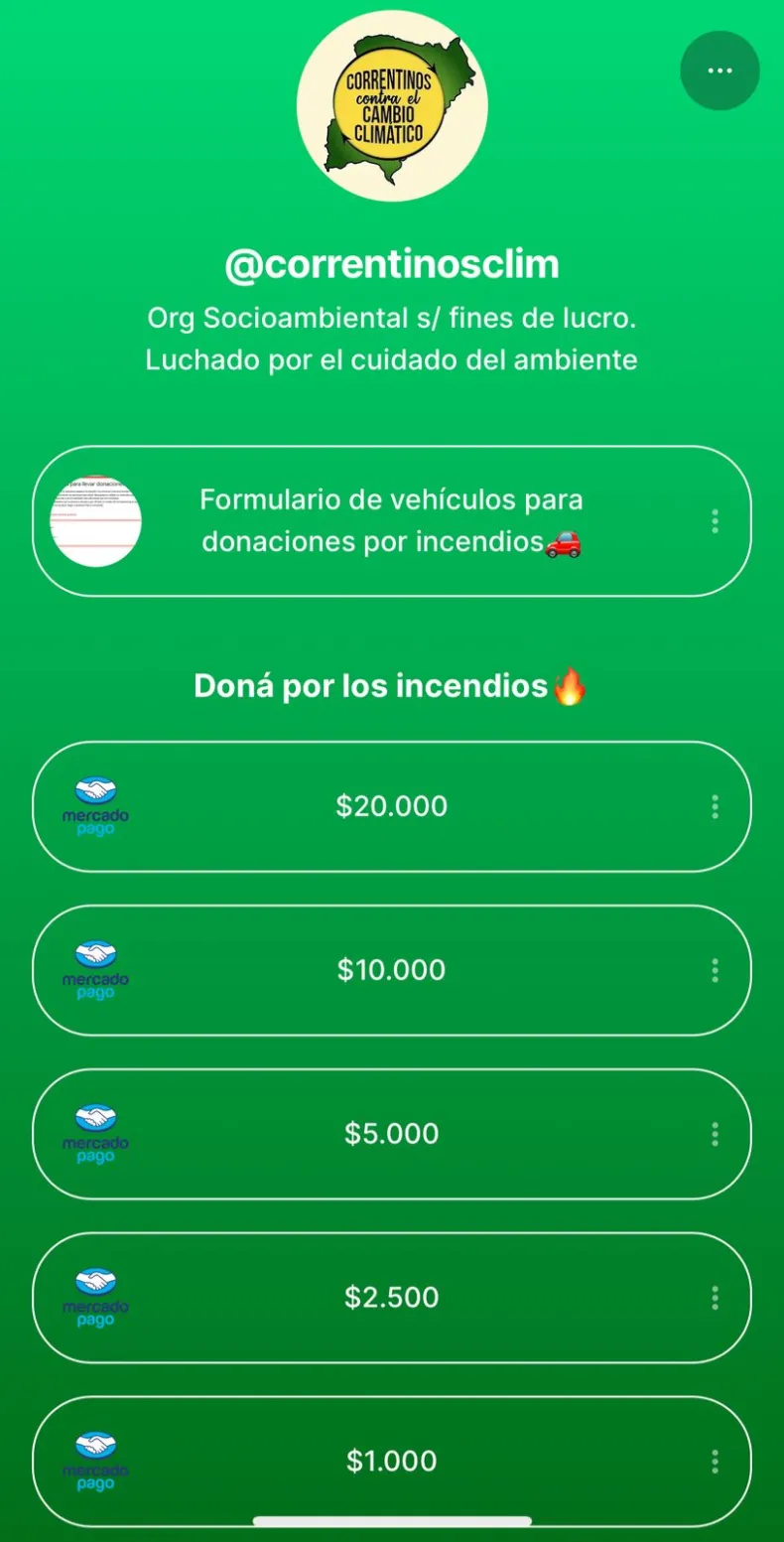 Además, quienes deseen contribuir económicamente pueden realizar donaciones a través del alias correntinosclim.mp (a nombre de Guido Paparella) o en los enlaces de pago publicados en sus redes sociales.